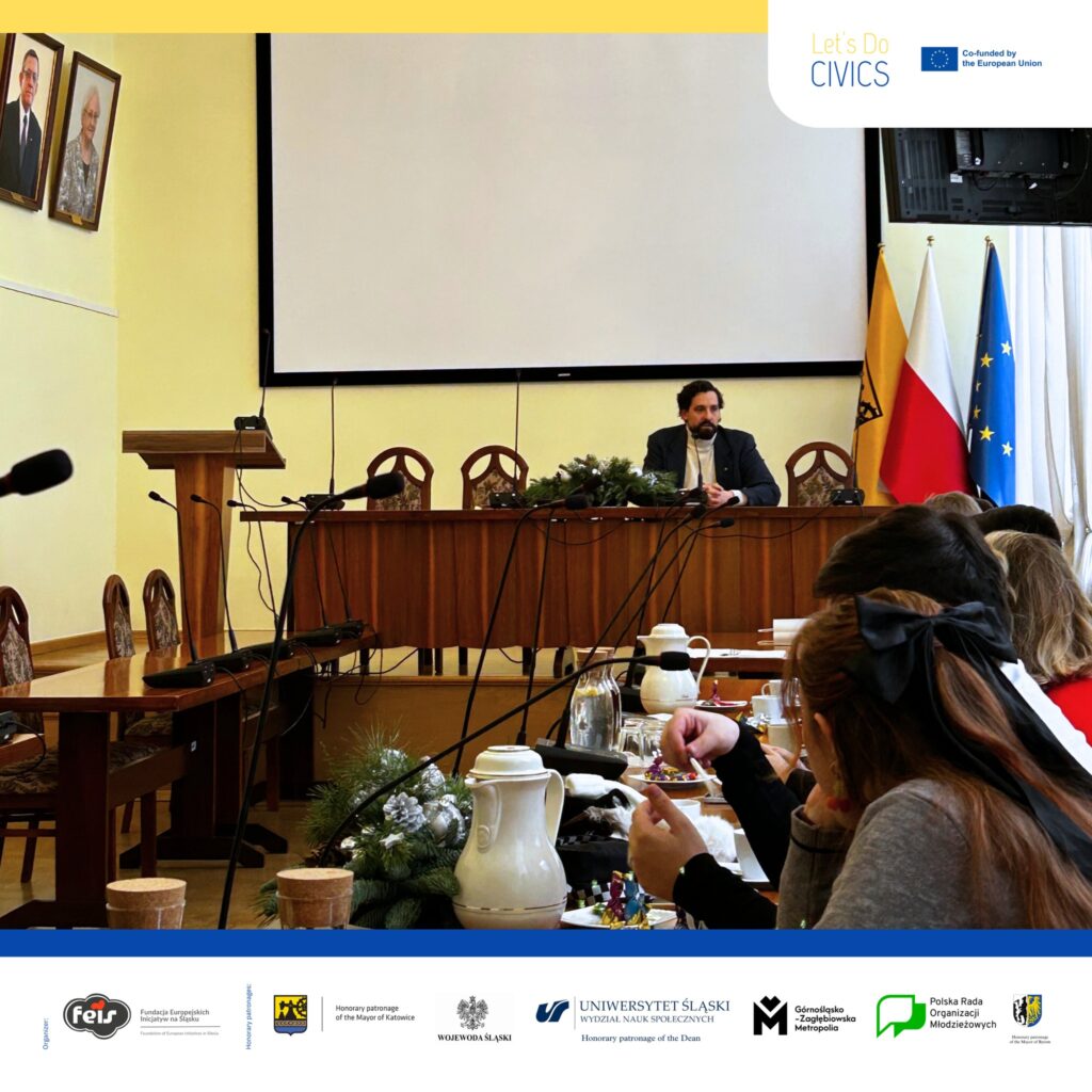 W grudniu 2024 roku Fundacja FEIS zrealizowała międzynarodowe szkolenie „Let’s Do Civics” w ramach działań akredytacyjnych programu Erasmus+. Projekt odbył się w dniach 8-15 grudnia 2024 r. na terenie Metropolii Górnośląsko-Zagłębiowskiej, a główne działania szkoleniowe miały miejsce w Bytomiu i Katowicach. Uczestnikami byli pracownicy młodzieżowi, edukatorzy i liderzy młodzieżowi z pięciu krajów: Grecji, Rumunii, Hiszpanii, Estonii oraz Polski.