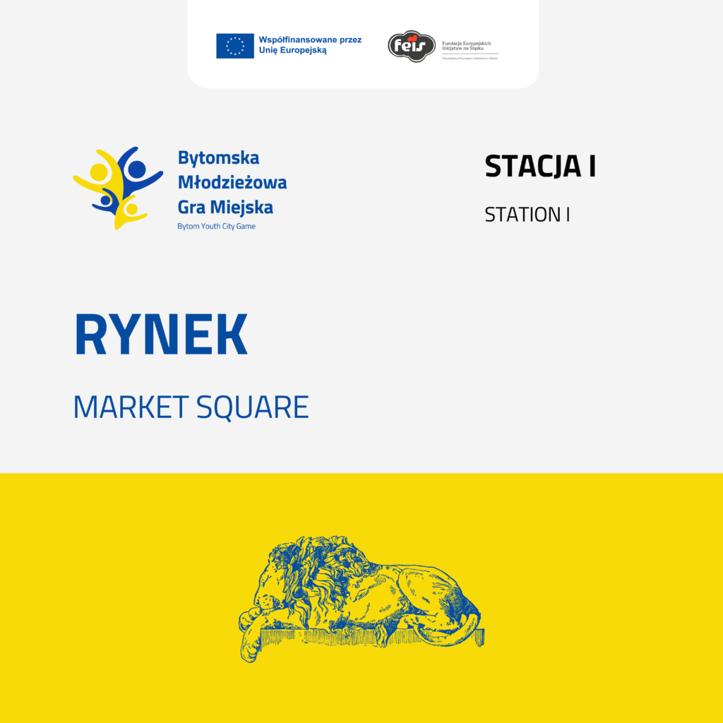 🇬🇧 Welcome to the heart of Bytom! The Market Square is a bustling spot on the map of Bytom, the Bytom Promotion Office in front of you is headquartered here. However, the symbol of the city, the Sleeping Lion, also rests peacefully in the market square. It is a majestic symbol of remembrance, honoring Bytom’s fallen soldiers who gave their lives in past conflicts. Its peaceful but majestic form represents both the strength of those who served and the eternal rest they found. Your first task is to take a picture next to the Sleeping Lion! You can brag about it to your friends on social media if you put the photo on the account on instagram – tag @feis.foundation and @bytom.pl, and we will share your account 🙂